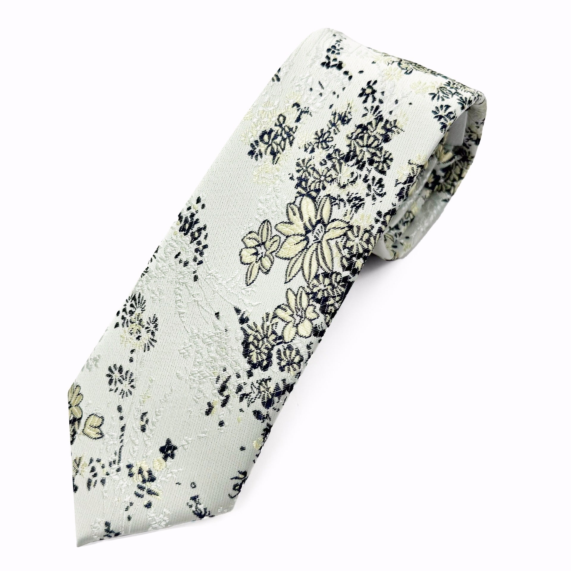 Blossom Drift – Ivory Floral Jacquard Tie