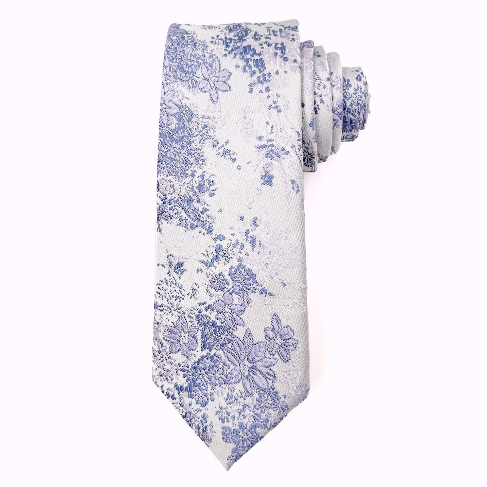Morning Mist – Silver & Blue Floral Jacquard Tie